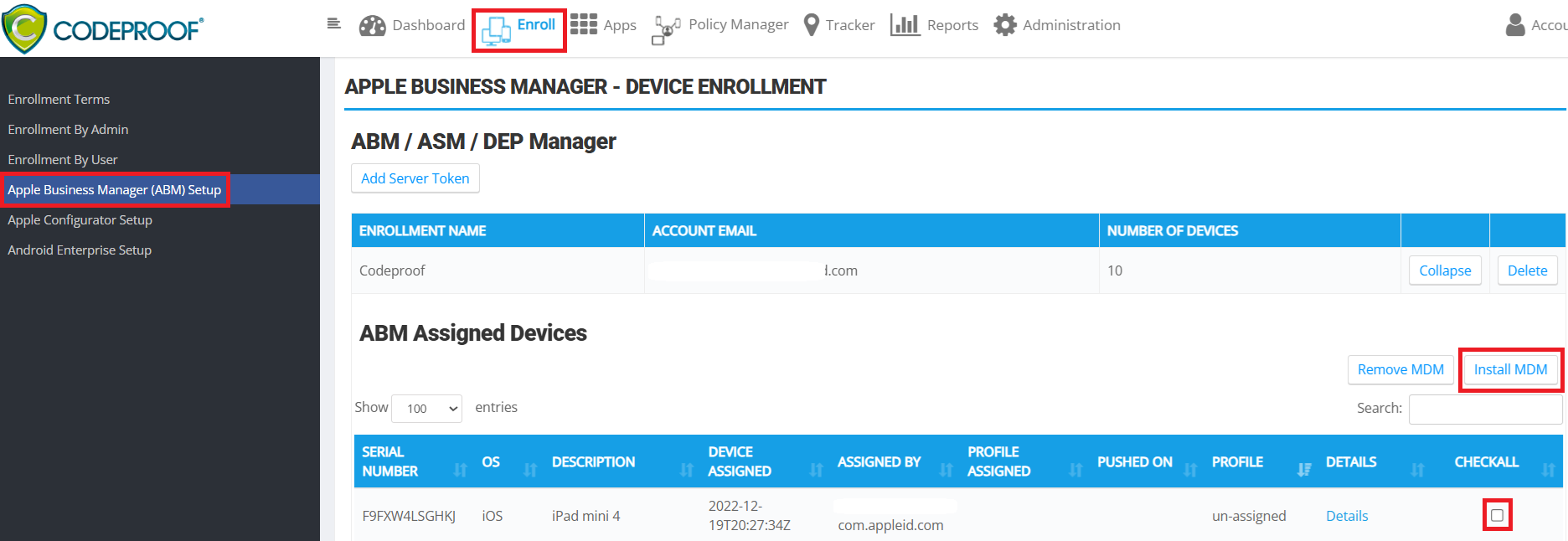 - Once complete, the target device automatically added to Codeproof MDM then we need to assign the MDM Profile. Please see below.